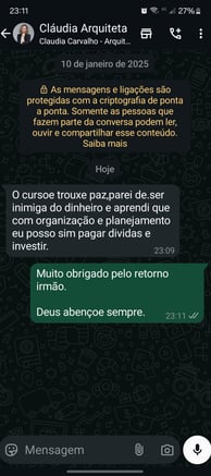 Ao longo das aulas, você será guiado passo a passo em uma jornada prática e espiritual rumo à organização financeira, ao controle de dívidas e ao uso consciente do dinheiro — tudo isso com base na Palavra de Deus.