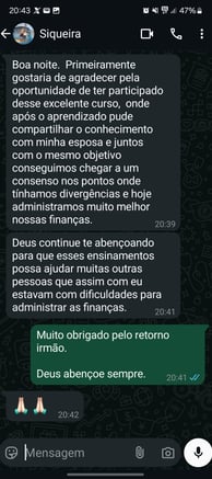O Paz Financeira Cristã é um curso 100% online, criado para ajudar você a transformar sua vida financeira com base em princípios bíblicos. Foi desenvolvido especialmente para cristãos que desejam sair do sufoco financeiro e viver com mais equilíbrio, propósito e paz.